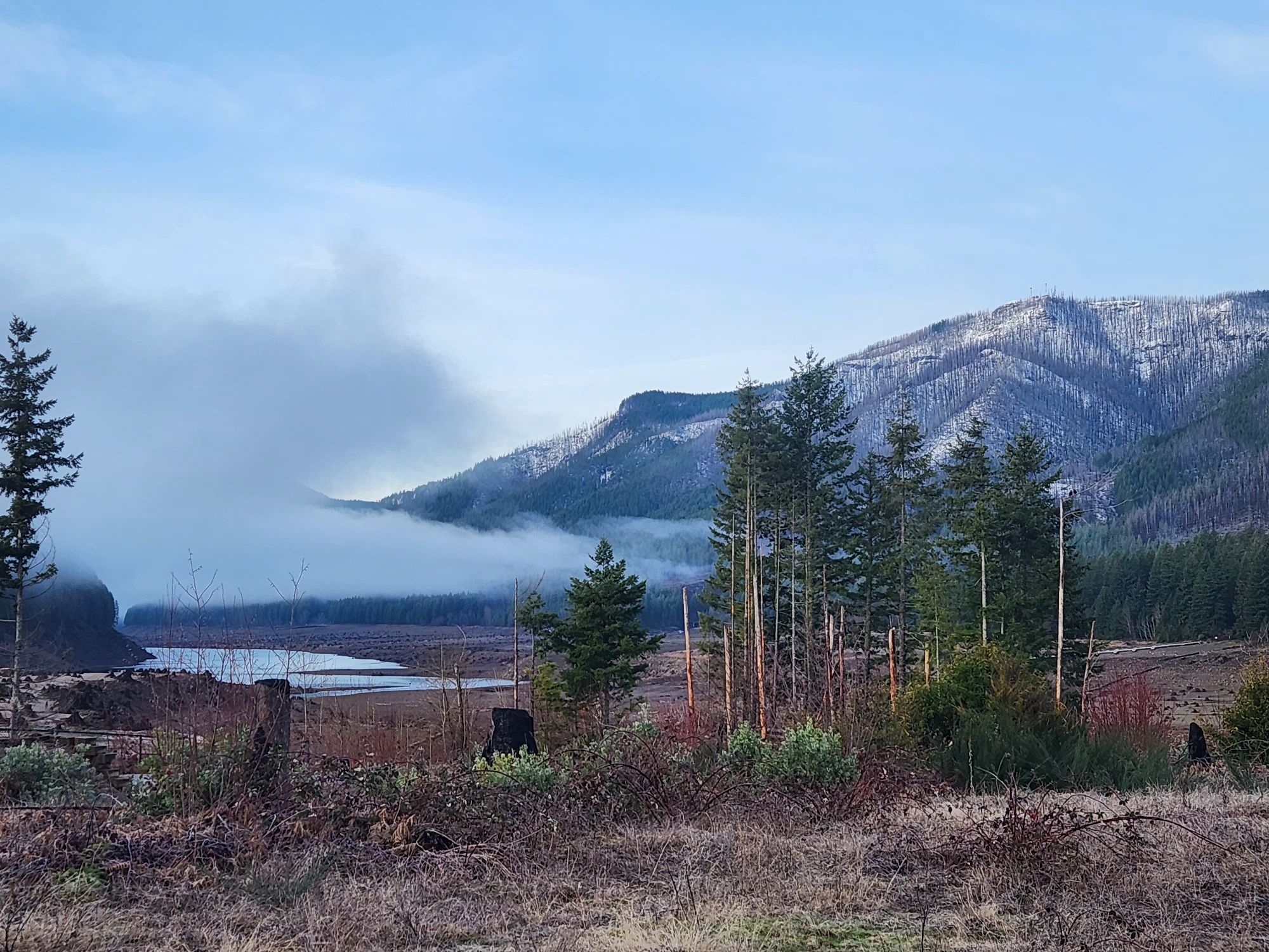 weirdly hardly raining in January, and today, Feb 10, it’s sunny up in the West Cascades along the North Santiam, Salems drinking water source.